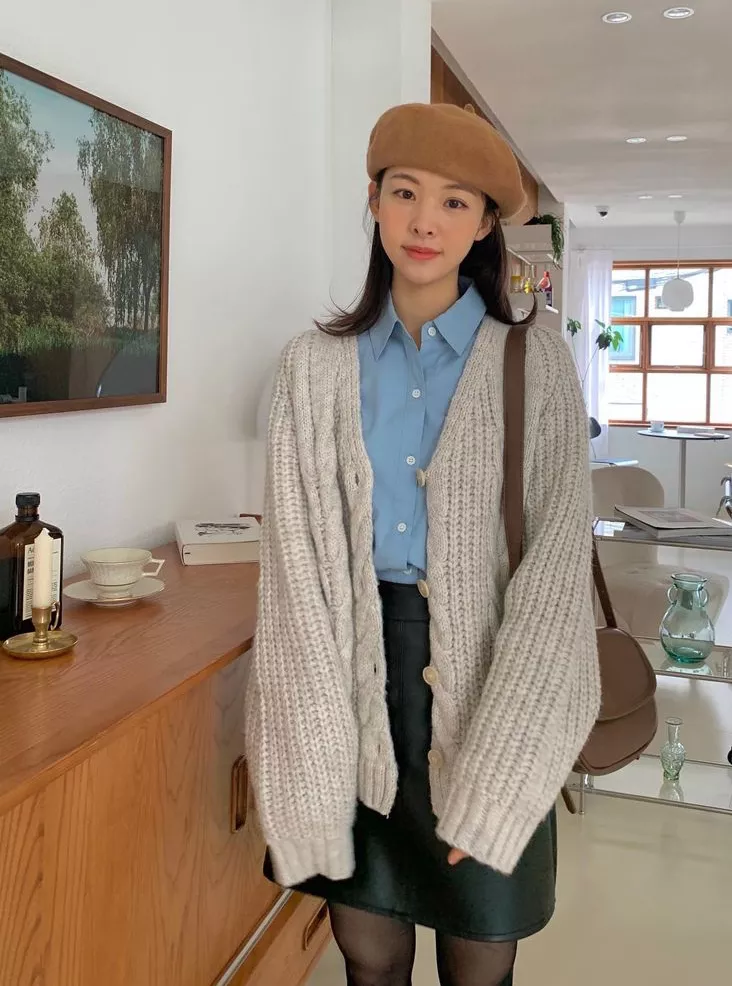 基本上在毛衣开衫里面加一件打底,穿到深秋不是问题,较粗的针织让上身变得更有分量,无论是单穿还是打底,慵懒氛围就轻而易举地get!