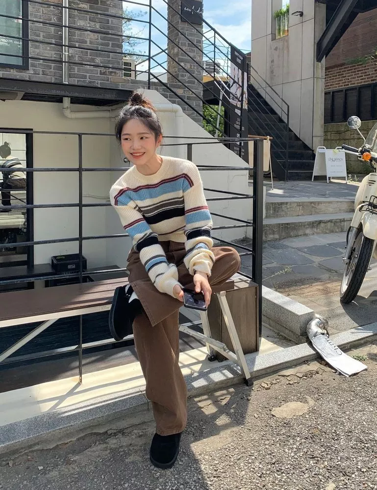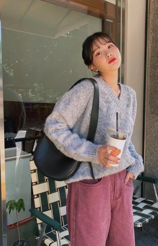 当然,除了相近色、撞色穿搭以外,各种颜色的套头毛衣与基础颜色的裤子或裙子都能碰撞出惊喜的火花,穿这样一身去图书馆,再合适不过,拥有舒适慵懒的气场。