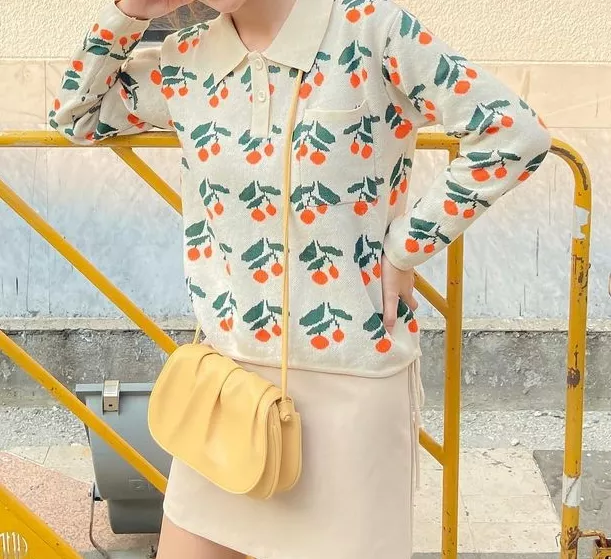 翻领毛衣也是不过时的时尚单品,如果小可爱不知道翻领毛衣怎么搭配,不妨试试可爱风,使用相近色穿搭的方式,组合一些亮色,会有意想不到的效果。