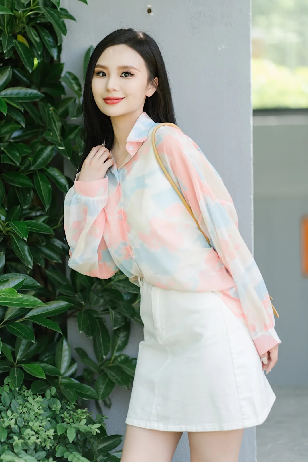 对于印花的选择,我会更注重衬衫的大面积色块,不规则的扎染图案就是我的心头宝。颜色不需要太多,两个就很出彩,完全不挑人。