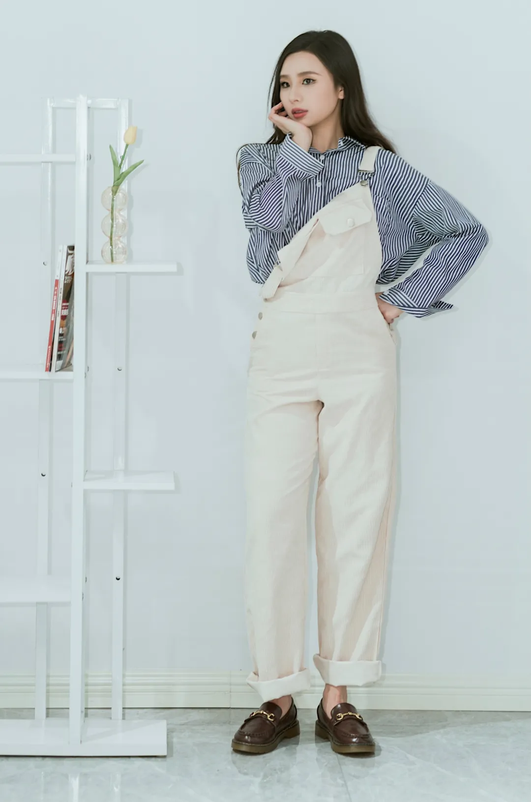 与背带裤的组合,散发着浓浓的的初恋味,分分钟变成校园清纯女神!穿的时候记得把一边的肩带放下来,显得随性又自在。
