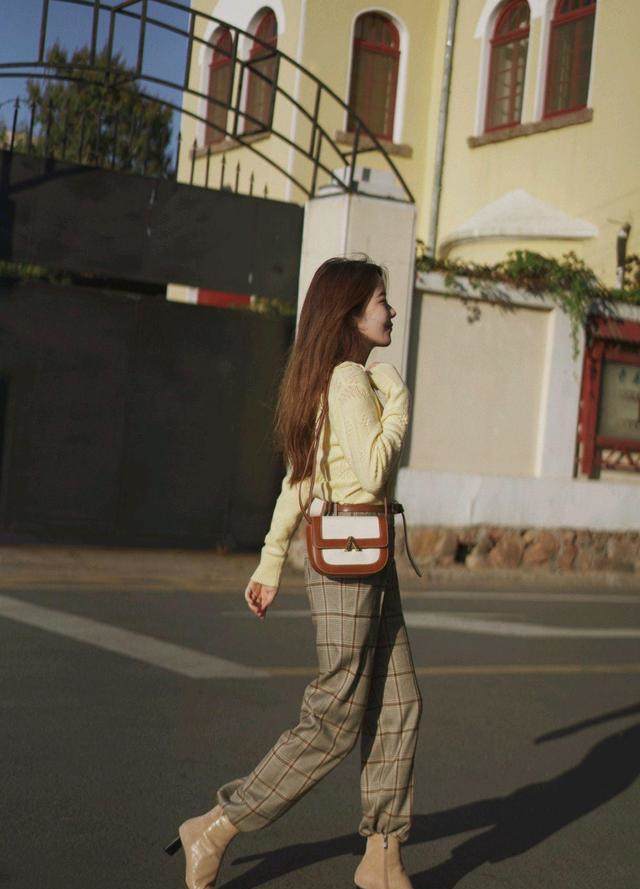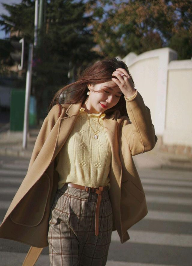 针织衫还可以怎么搭配?精致柔和的搭配方式我们刚才也说了,针织衫的用途很多,可以外穿,也可以作为内搭,作为内搭时作用也不容小觑,我们的服装穿搭往往有时候内搭会起到很关键的作用,就像这位时尚模特所穿的这件针织衫就很别致,她选择了一件淡黄色针织衫搭配一件大地色外套,配色很柔和,给人一种很温暖的感觉,并且还把肤色衬托得很白皙,显得整个人活力四射。