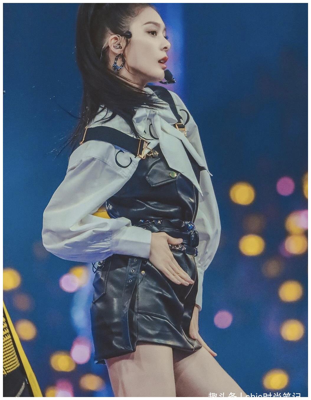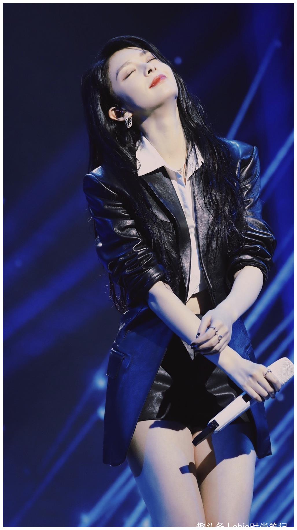皮质的西装,很多人驾驭不起来,但是她可以,搭配皮短裤,长腿取胜,美得恣意张扬。