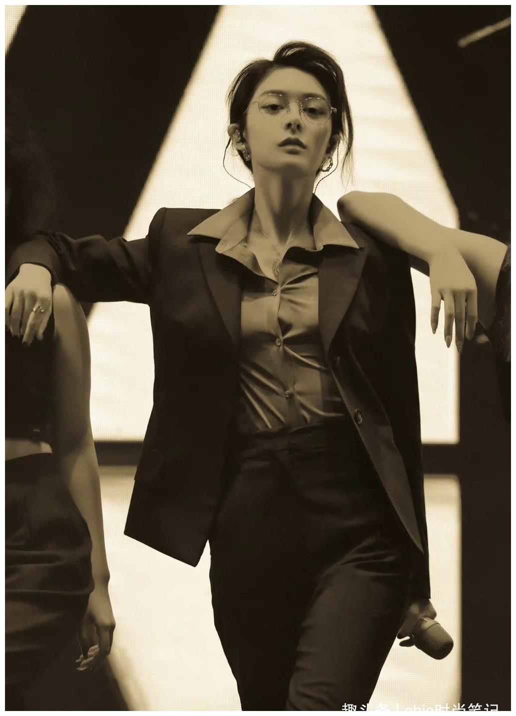 一身仙侠似的白色西装,安静地坐在那儿,让我们不禁疑惑,唱的是道骨清风吗~尤其金框眼镜的衔接,多了几分斯文矜贵公子的感觉。