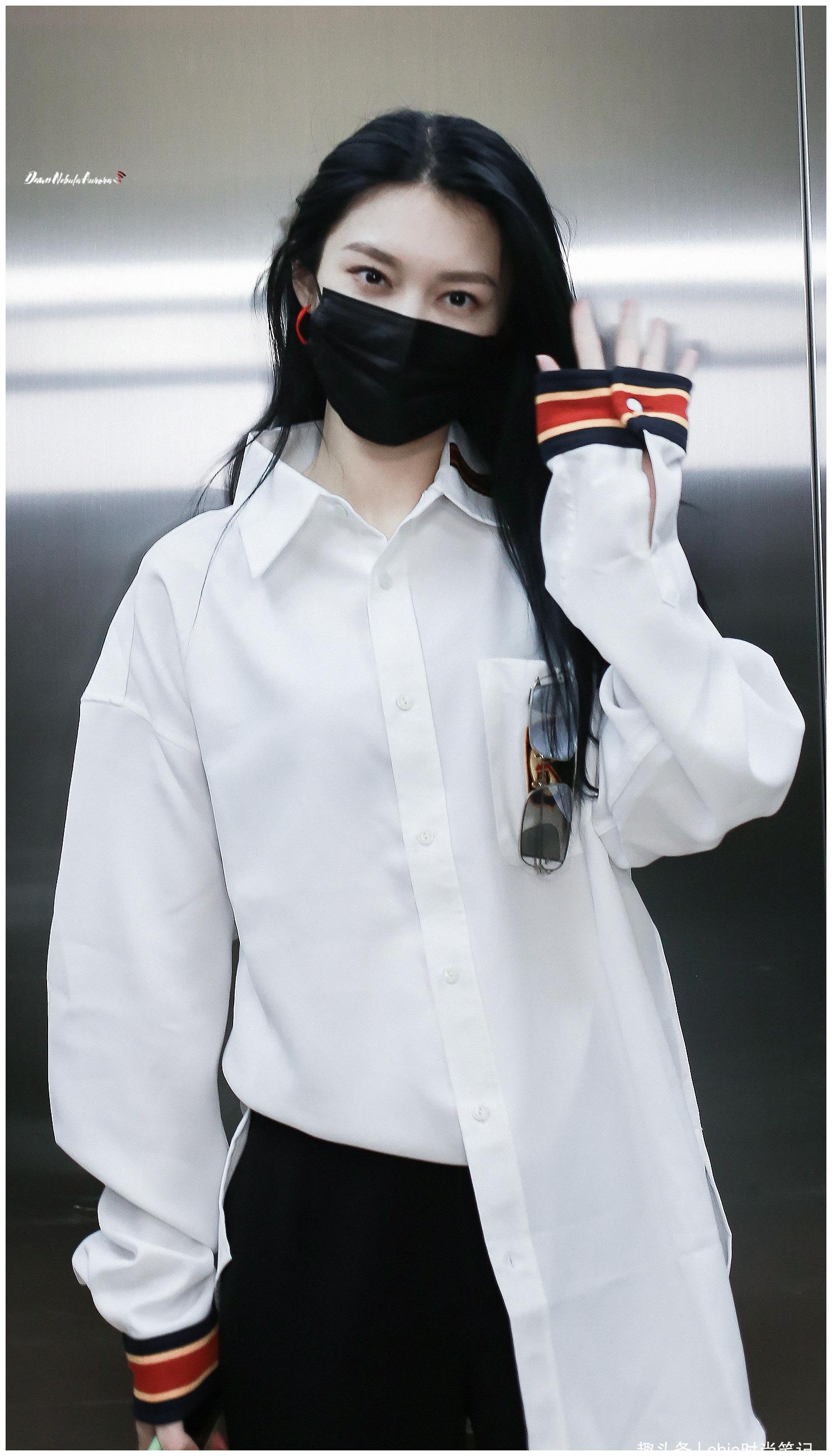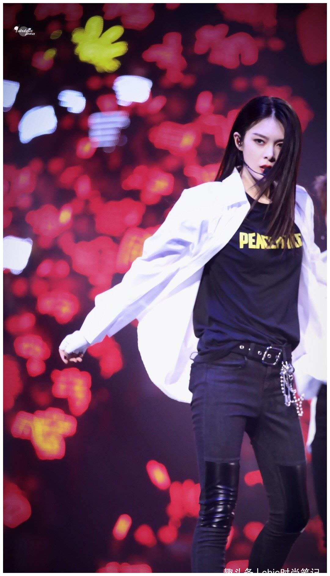 白衬衫当作外套,内搭黑色字母短袖,加上紧身长裤,这样的穿搭在日常中是帅的,但在镁光灯下以及五光十色的舞台上,会不会显得有几分逊色呢,其实不会,舞台难道不正需要这样的清润明朗吗~