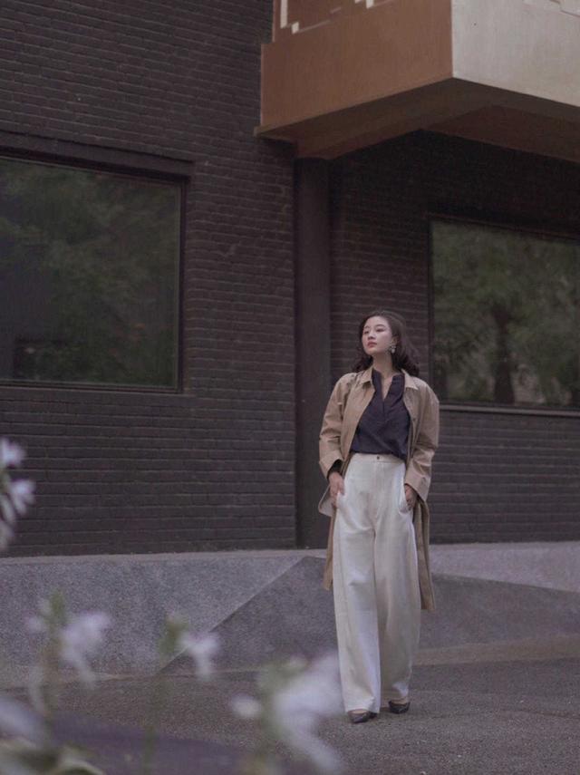 风衣其实不像大衣一样,大衣可能还有一点比较薄厚的款式,但很多的风衣都是非常单薄的,但我们在秋天,有时候稍微冷一点,又会运用到一些外套 ,风衣其实比较好穿搭的一款。