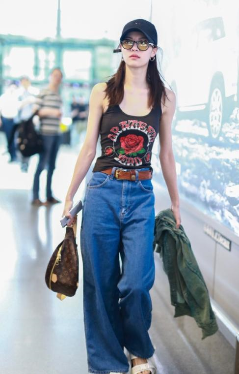 钟楚曦肤白貌美,身材高挑,在下半身结合了黑色帆布鞋,则能够诠释出复古的气息,身材高挑的女孩可能在选择鞋子上没有过多的要求,而如果身材娇小的话,一定要尽可能地选择一些高跟鞋或者是厚底鞋,显高的效果会更好,还能够进一步让你的身材被修饰。