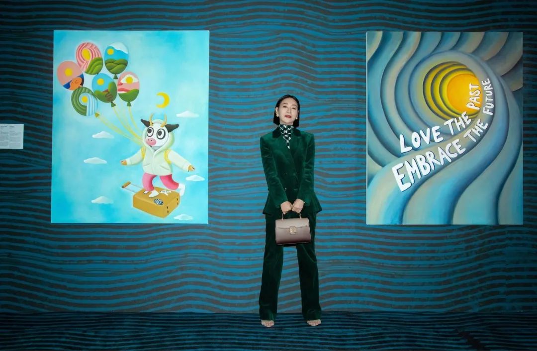 Cici项偞婧身穿PORTS 1961花卉图案的长款连衣裙,在不同展览空间中穿梭,成为一道飘逸的风景线。