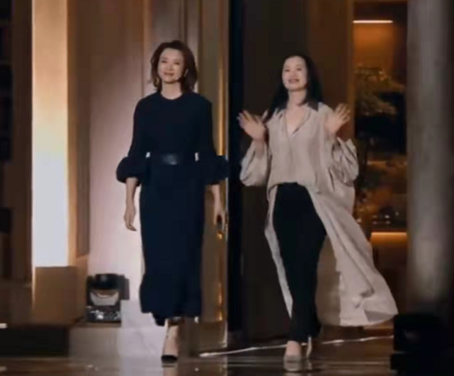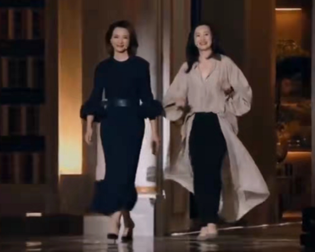 同时两位的穿搭也堪称是优雅风格的教科书,并且能够很好的凸显出各自的优点跟气质,下面我们就一起来看看吧。央视一姐董卿遇到对手了!影后咏梅穿高腰裤录制《朗读者》,超美
