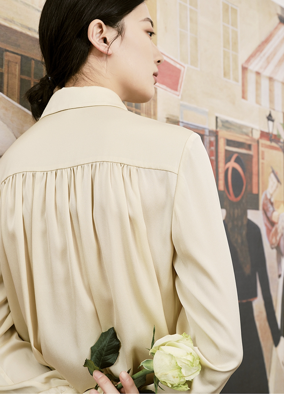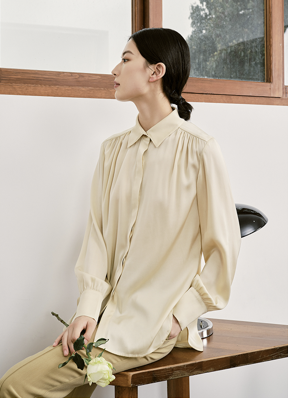 #抽褶素色衬衫(92%桑蚕丝):
