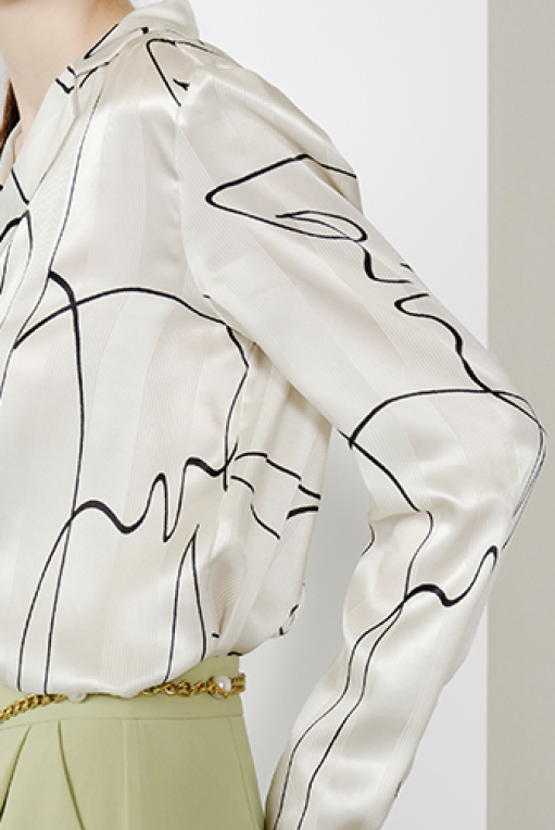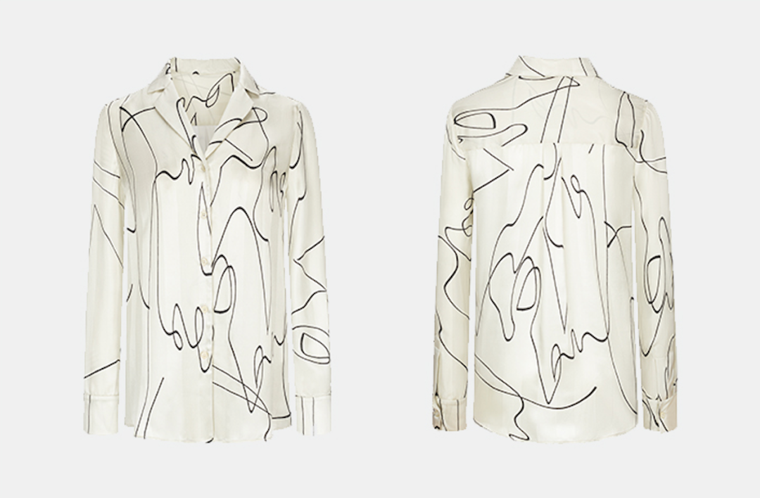 不规则的黑色弧线,给这件衬衫增加了许多灵气。