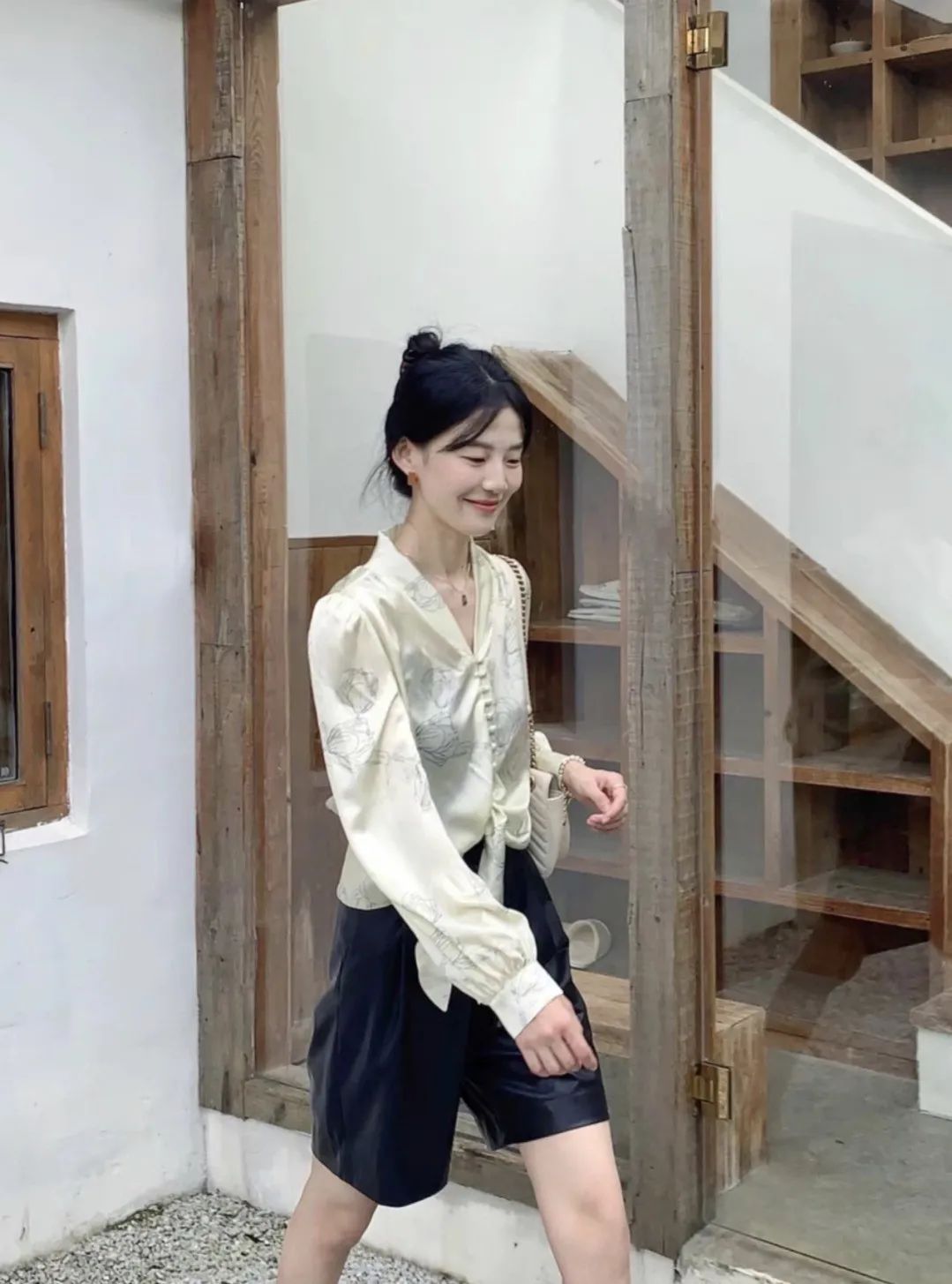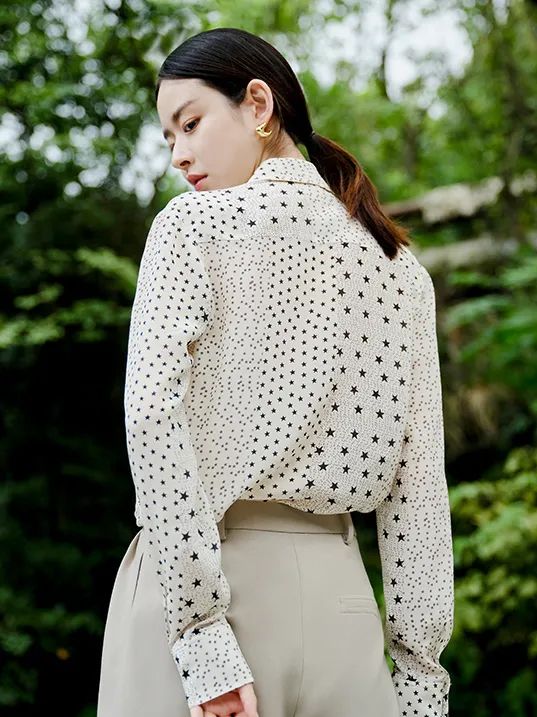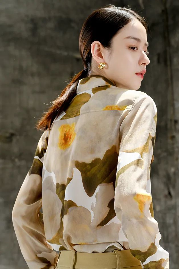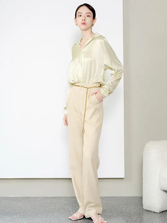 即将入秋的季节,用一件真丝衬衫打底,刚好可以适应早晚不同的气温变化。