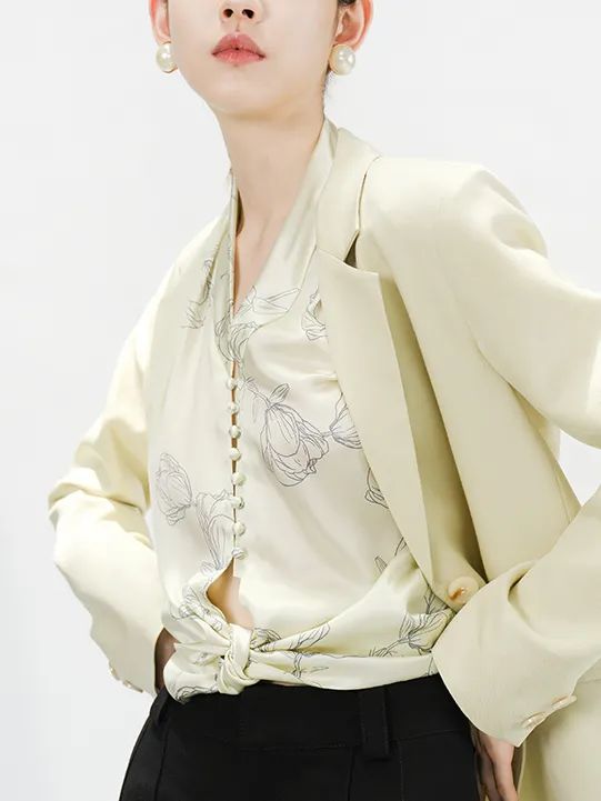 推出后,所有款式都受到大家欢迎,甚至这件真丝西装一度卖断了货!