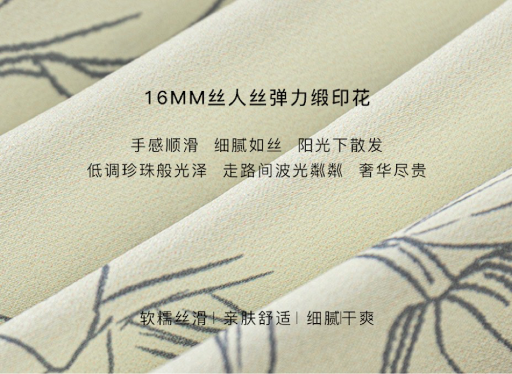 因为真丝就是这样一种神奇的材质:不上身亲自试穿、感受,是根本感受不到它上身那种无风自动、飘逸轻灵的感觉。