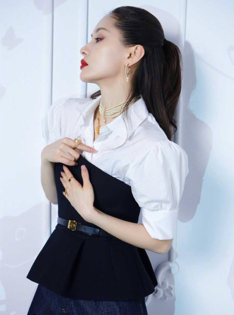 王子文恋爱后美出新高度,白衬衫配抹胸衣,高级感挡不住。王子文的身高虽然不高,但是身材比例非常好,在穿搭上的衣品也比很多的同龄女明星们要好,这身搭配在上半身用简单基础的黑白色结合来呈现出极简风的搭配效果,低调却可以呈现出极简风的高级感。