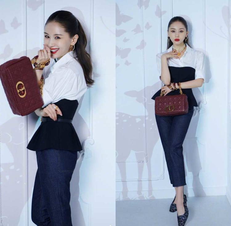 王子文在手上搭配了一款酒红色的包包,在通身的色彩搭配上显得十分简约低调,但是少了点装点效果比较好的辅助色,王子文手上的酒红色包包在款式的设计上既洋气又带着点俏皮感,非常适合王子文的鬼马精灵。在通身的配色上也可以达到画龙点睛的效果。