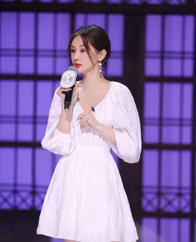 基础的纯白色简单且干净,不管是在舞台上还是在日常穿搭中都非常好用,这款基础的白色连衣裙用V领的设计方式来呈现出修饰脸型和增加女人味的效果,搭配上娃娃裙的设计方式,将王子文身上的少女感完美的凸显出来。