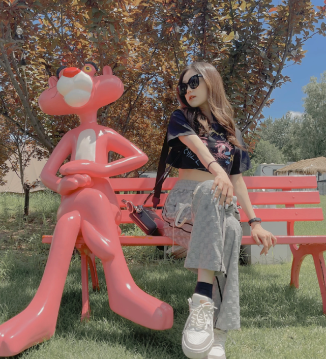 希林娜依·高时尚感很强,私服look也很有魅力,这次穿着黑色印花短袖T恤出镜,同样是炫腹装款式,秀出纤细小蛮腰让人心动,搭配浅灰格纹长裤,休闲又不乏时尚魅力。大家喜欢希林娜依·高的时尚look吗