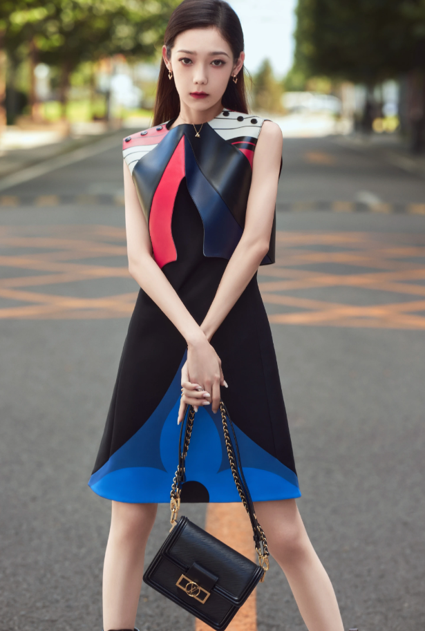 作为女团C位的希林娜依·高,外形条件非常出挑,五官长相属于比较清冷的气质,自带高冷范彰显强大气场,而窈窕纤瘦的身形曲线,也对各种时尚look都有很强驾驭能力。这次穿着一袭拼色连衣裙出镜,版型款式颇为简洁,无袖小坎肩拼接富有设计感,采用多种拼色效果很有特点;裙摆部分同样加入蓝色印花元素,一下子提升整体look的时尚魅力,着实非常迷人。