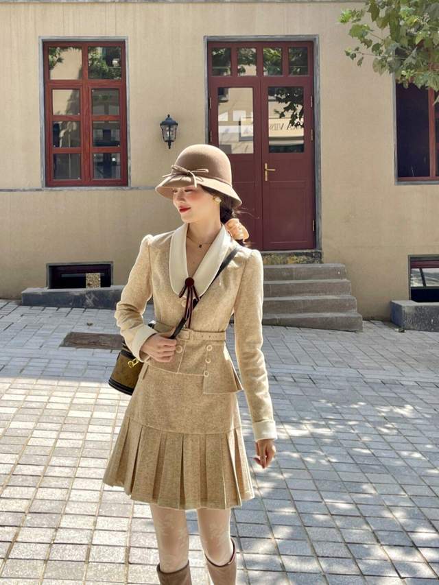 像这样的穿搭,在秋天穿起来是比较保暖的,而且几乎不挑场合,不论什么场合都很合适,穿起来法式又复古。