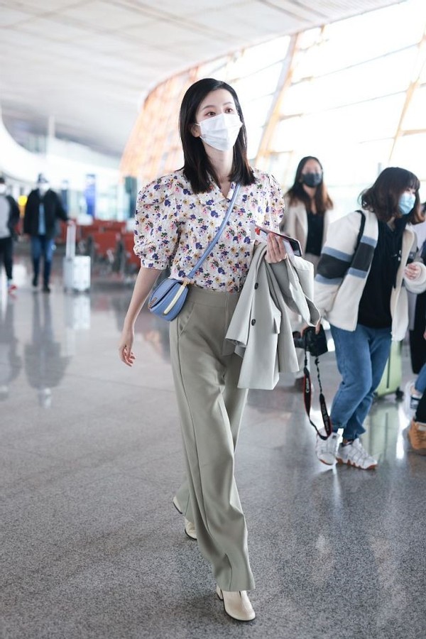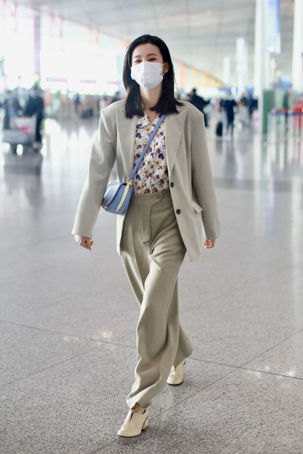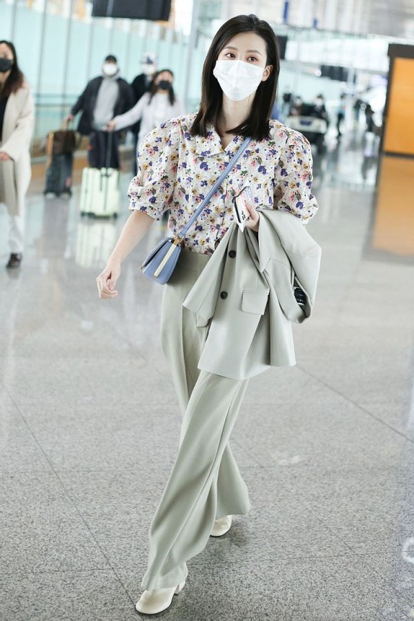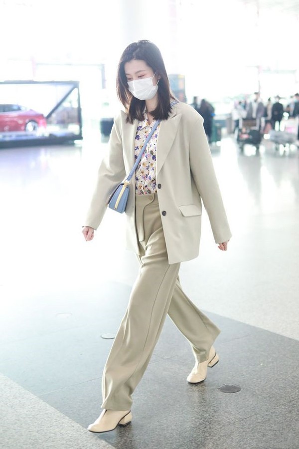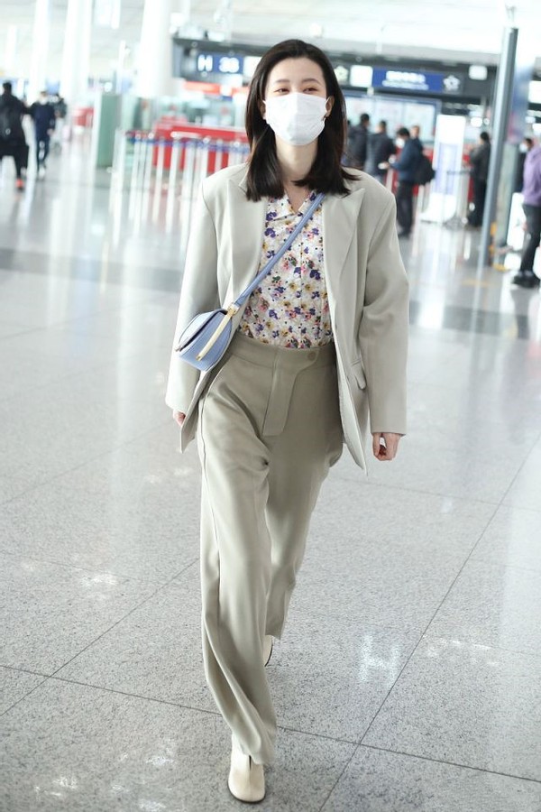 在穿搭碎花单品时,如果不想要给人留下过于腻味的印象,推荐搭配偏率性的中性风单品以调和碎花给人的甜腻感。乔欣的造型就很好的诠释了平衡的风格,西服套装垫肩的设计+宽松的版型,为整体增添了一丝个性感,又给人带来了慵懒随性的感觉,很好的中和了碎花的甜腻。