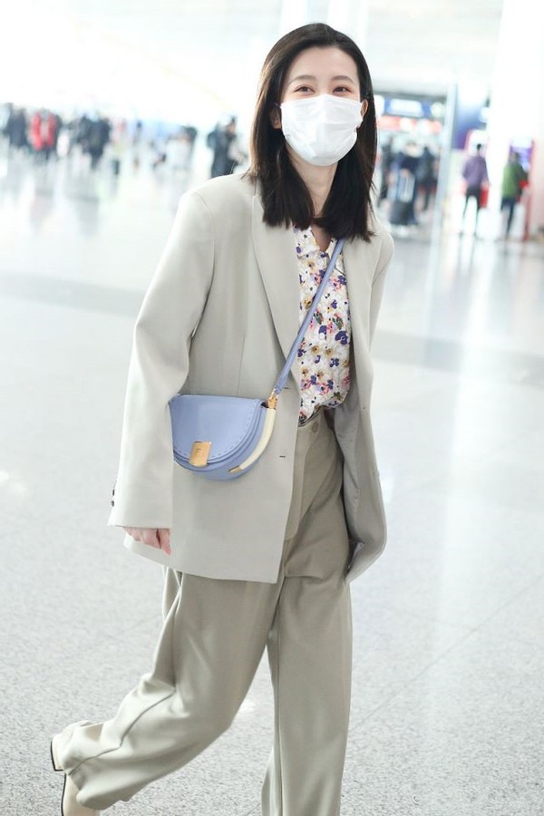 乔欣的西服外套选择了米灰色的套装,米灰色即在灰色中加入偏暖的米色调,调和了灰色的过冷感的风格,高级大气不失优雅,米灰色西服套装给人留下沉稳大气可靠的印象,非常适合职场的打工人。
