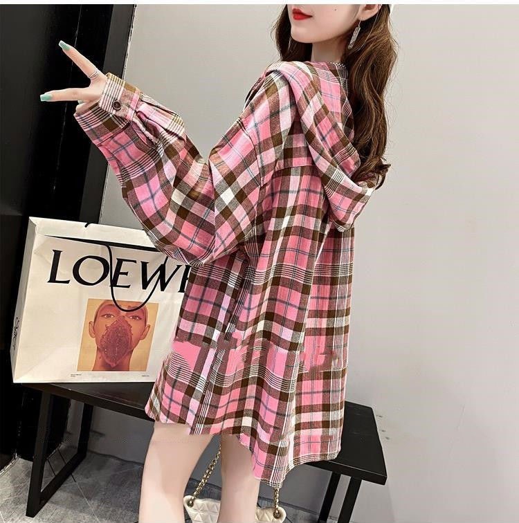 如果觉得简约版的格子衬衫还是没有任何特色的存在,那么这个时候不妨试试上面这款连帽格子衬衫,除了拥有可爱甜美的风格之外,因为连帽的设计,还会有着彰显年轻化,穿搭起来有着一种减龄的效果,而作为宽松款式的存在,适合大部分身材。