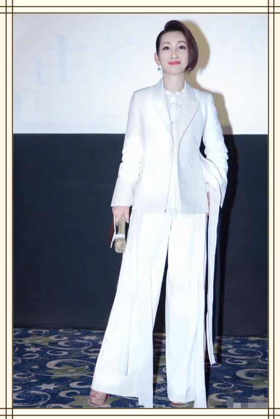 貌似秦海璐真的非常适合演绎一些霸道女总裁的角色,看她这一身白色的西装搭配就能瞬间feel到那个气场。白色的西装虽然好看,但其实也挺难驾驭的,特别是如果你肤色偏暗淡会使你整个人看起来更暗沉。但秦海璐的这身西装,从剪裁上就特别适合她的身形,而且西装的外套很挺拔,在腰身的位置有几个开叉的设计,显得很独特。长款不规则的阔腿裤之前很流行,基本人手一条,特别是裤子旁两根带子设计,更抢眼。