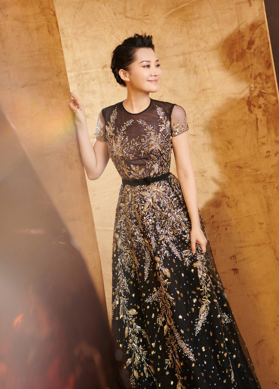 经典的小黑裙备受关注,想要把这种基础的连衣裙穿出时尚感,可以结合不同的细节设计,下面许晴搭配的黑色连衣裙结合了领口的银色刺绣,能体现她的时髦气质,看起来靓丽还知性。长款黑色连衣裙的搭配也很沉稳,四十岁或者五十岁都可以穿,而且像这种拖地连衣裙非常大气,高个子女性千万别错过。