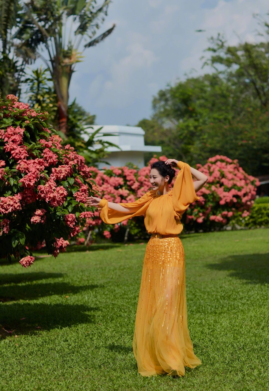 这一次的许晴给自己搭配了时髦的橘黄色裙装,暖色调的上衣和半身裙会显得更有活力,整个人看起来非常的俏皮。而且这种亮色系服饰的存在感很强,适合成熟女性,会比黑白色更加减龄。