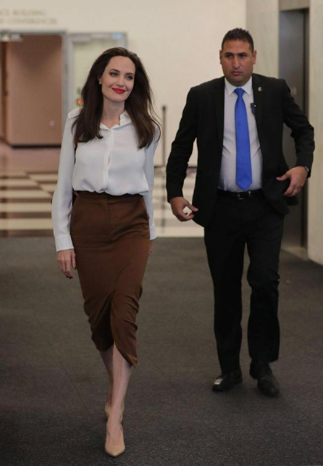 安吉丽娜·朱莉是赫赫有名的女神,如今的她越来越有魅力,而且身材管理依然到位。这一次的她搭配一身时髦的衬衫和包臀半身裙,虽然款式简洁,可却能体现女人味,使得安吉丽娜·朱莉的个人魅力呈现得淋漓尽致。安吉丽娜·朱莉气质无敌了,穿白衬衫+大地色包臀裙,高级又优雅!
