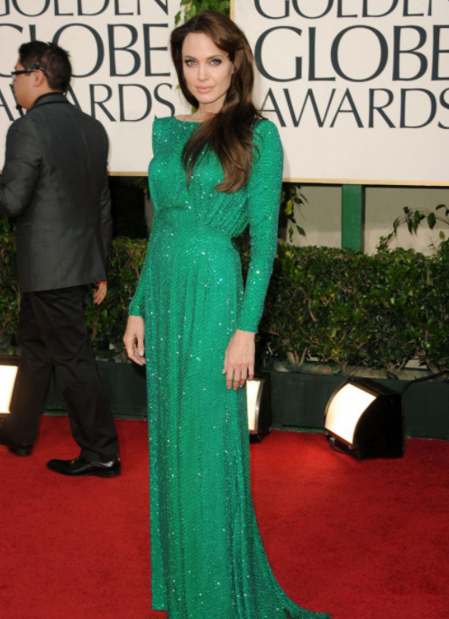 如果你想要强调自己的身材曲线,可以借鉴这种修身的连衣裙,修身剪裁可以体现你的凹凸身材,让女人味散发到极致,比如下面的绿色连衣裙就非常耀眼,将亮片融入在连衣裙中,可以提升 安吉丽娜·朱莉的存在感,不愧是女明星。
