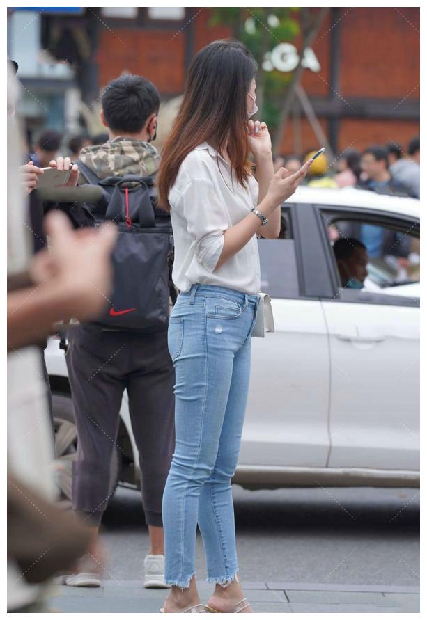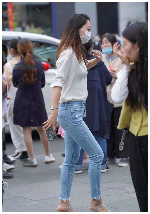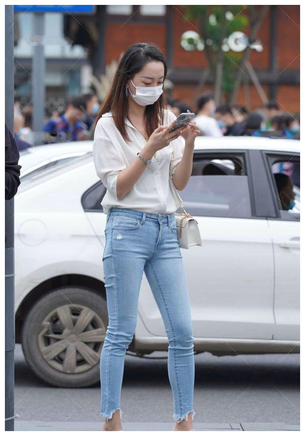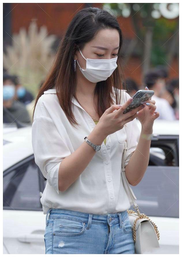 衬衫搭配浅色牛仔裤,轻松穿出知性女神范儿