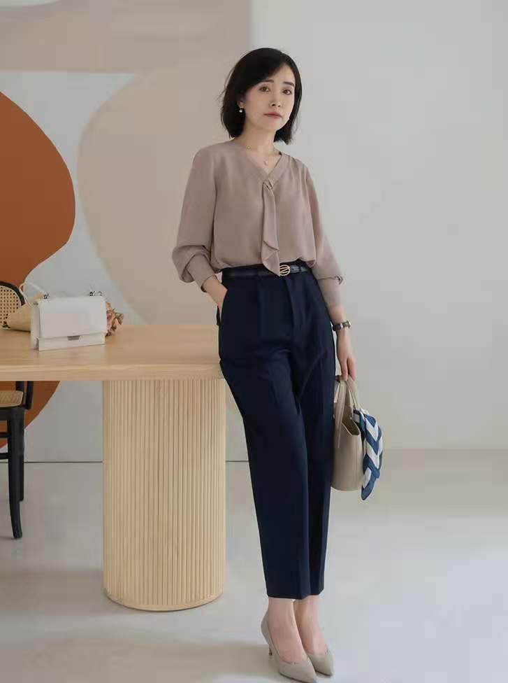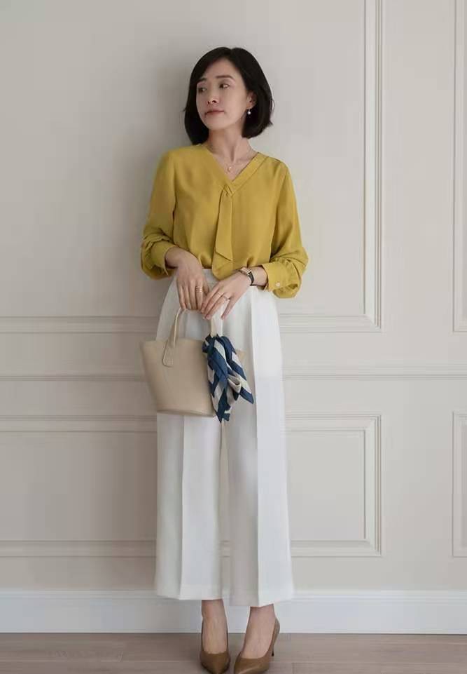 上面三种搭配方案适合20岁到30岁的女性朋友穿,而这个“系带衬衫+西装裤”适合30+女性穿,主打优雅知性美,彰显出中年女性特有的优雅魅力。
