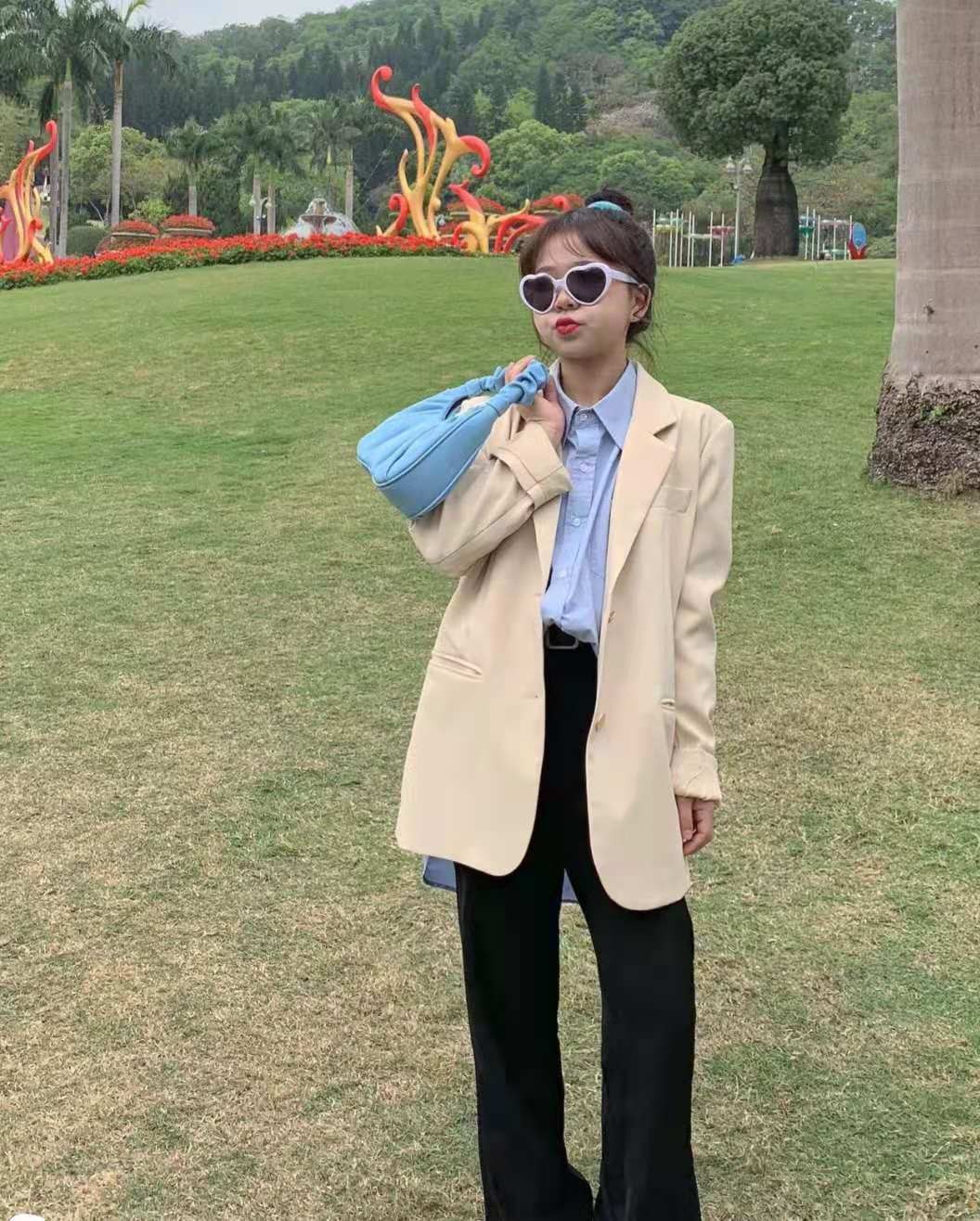 系带衬衫的领口设计带有法式优雅风情,为了凸显出这一魅力,我们选款时,尽量以天丝、丝缎、绸缎这些高级面料为主,可以赋予系带衬衫更多高级感。至于为什么搭配西装裤,是因为西装裤宽松度适中,有利于修饰腿型,让腿部不显粗胖。