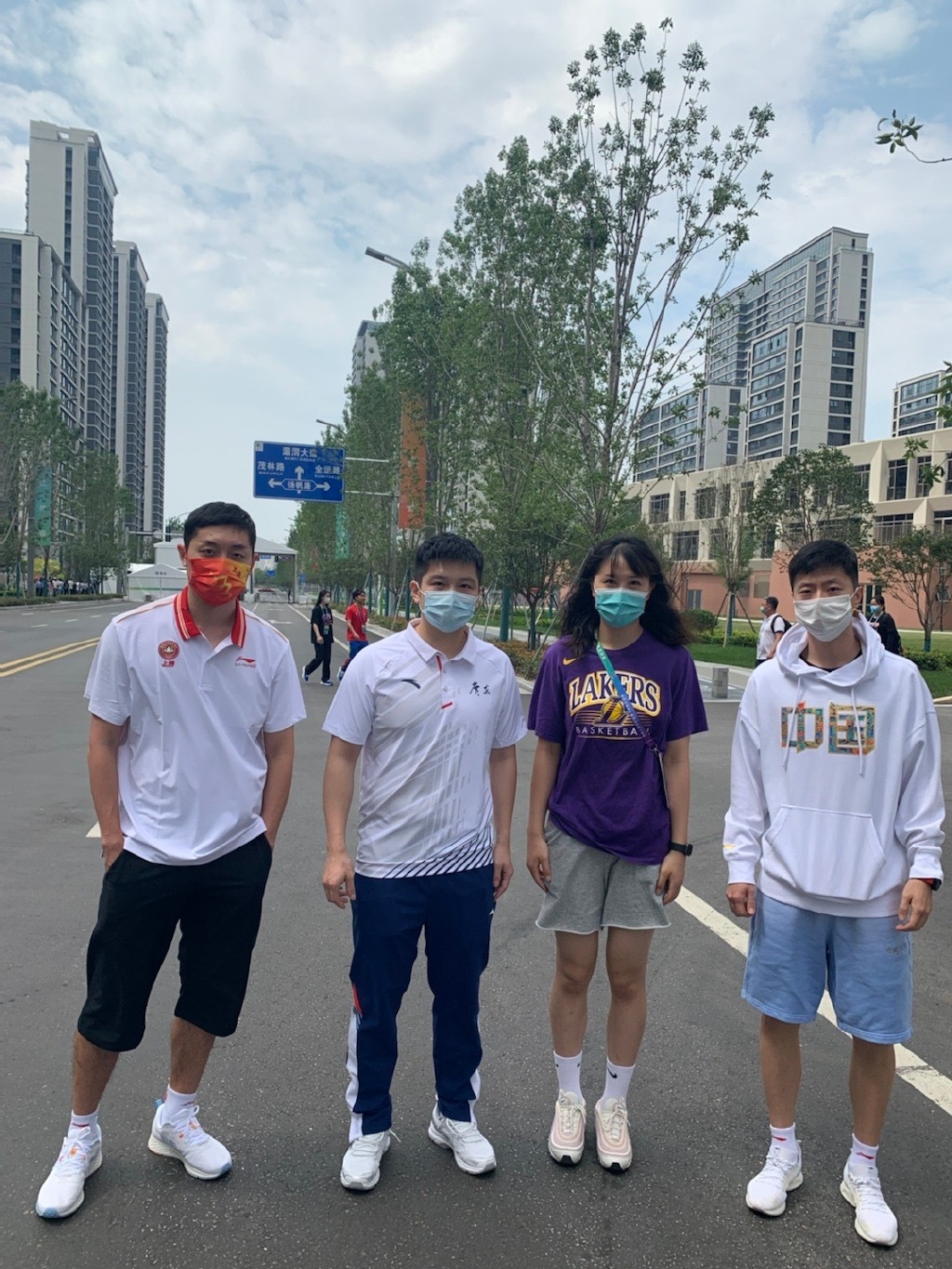 第十四届全运会开幕式今晚举行,今天绝大部分项目都没有安排比赛,不少运动员准备参加开幕式。今天在全运会村里可以遇到很多体育明星,国乒队员也成为合影工具人,被各种人求合影。国乒男队奥运阵容马龙、许昕、樊振东再次同框,三人一起与江苏女篮队员胡鑫雨进行合影。