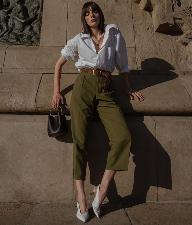 短款的白衬衫显气质的俏皮,与直筒裤搭配在一起的时候,会让穿搭极具层次感,同时短款衬衫也可以裸露出纤细的腰肢,终究可以释放出女性举手投足之间的独特魅力。