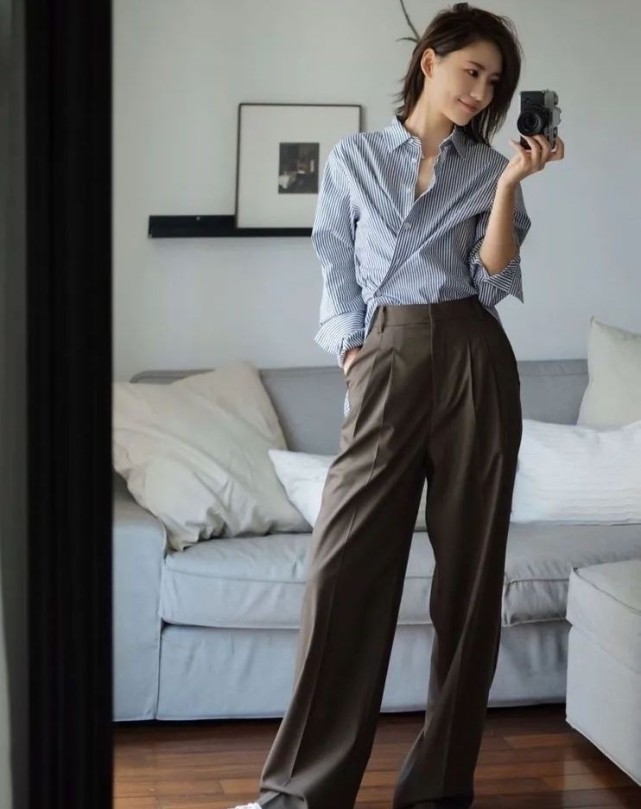 衬衫加直筒裤的搭配完全是今年初秋最完美的穿搭组合,不但十分洋气,而且还很百搭的搭配,不管是衬衫还是直筒裤,不同的版型带来的风格都是截然不同的。唯一的相同点,便是都很美丽且潮流。