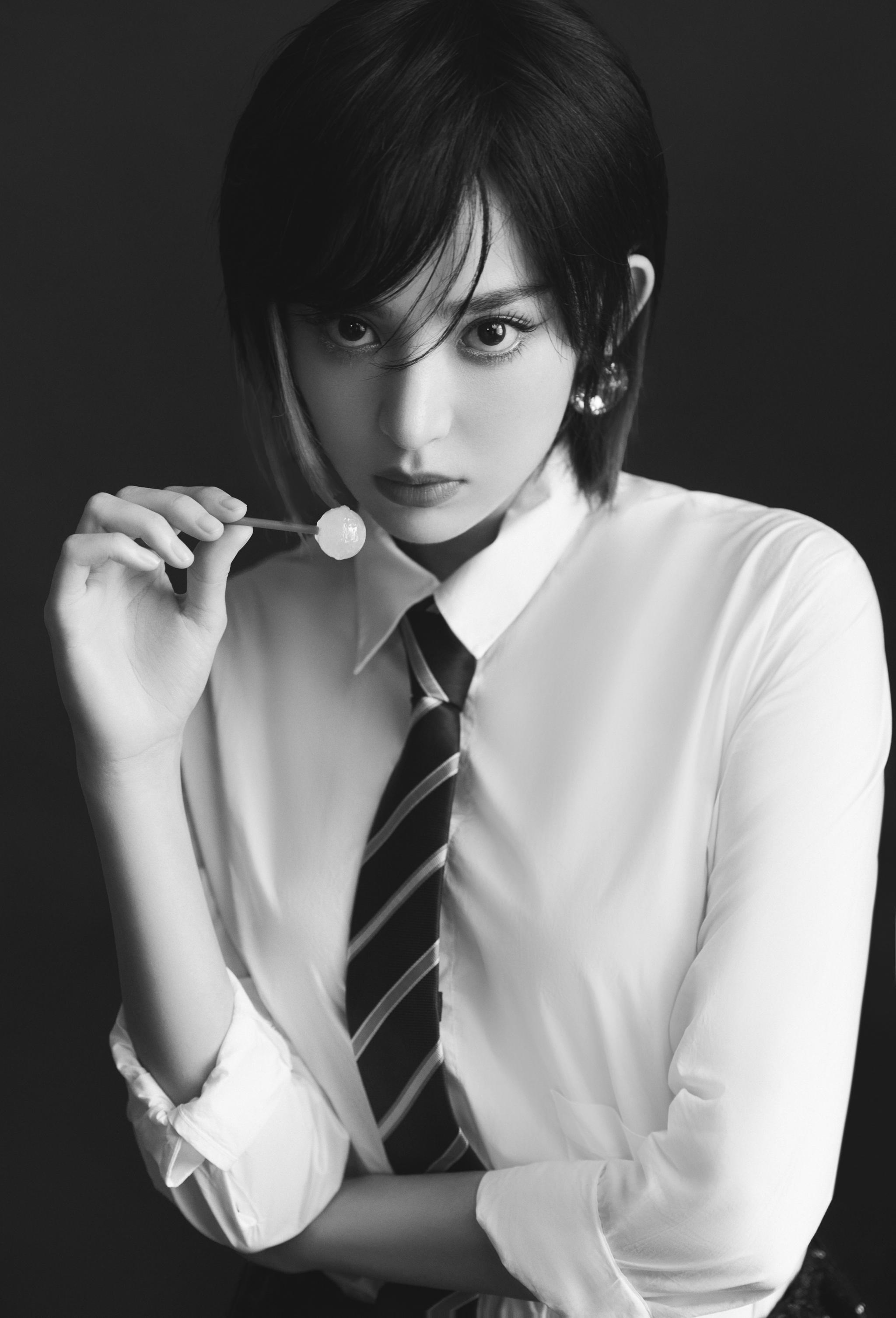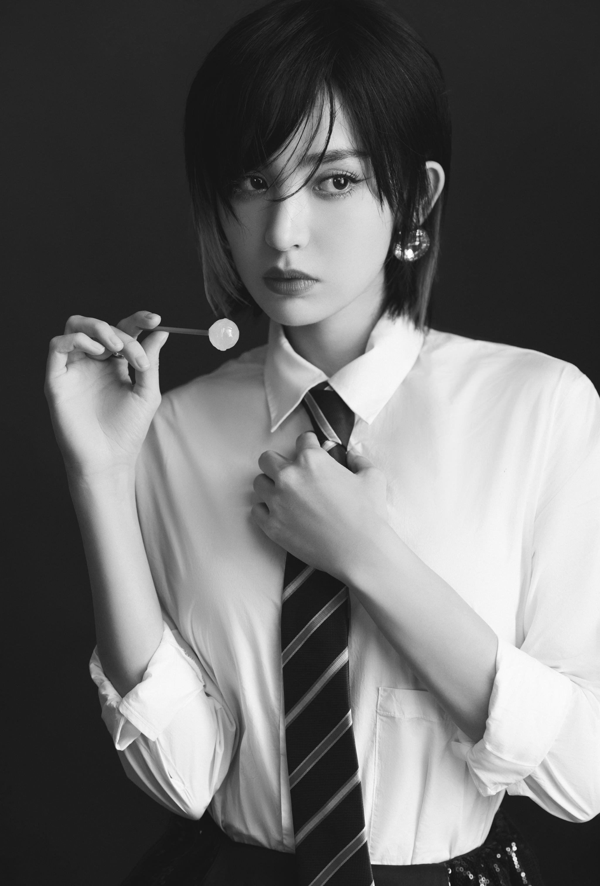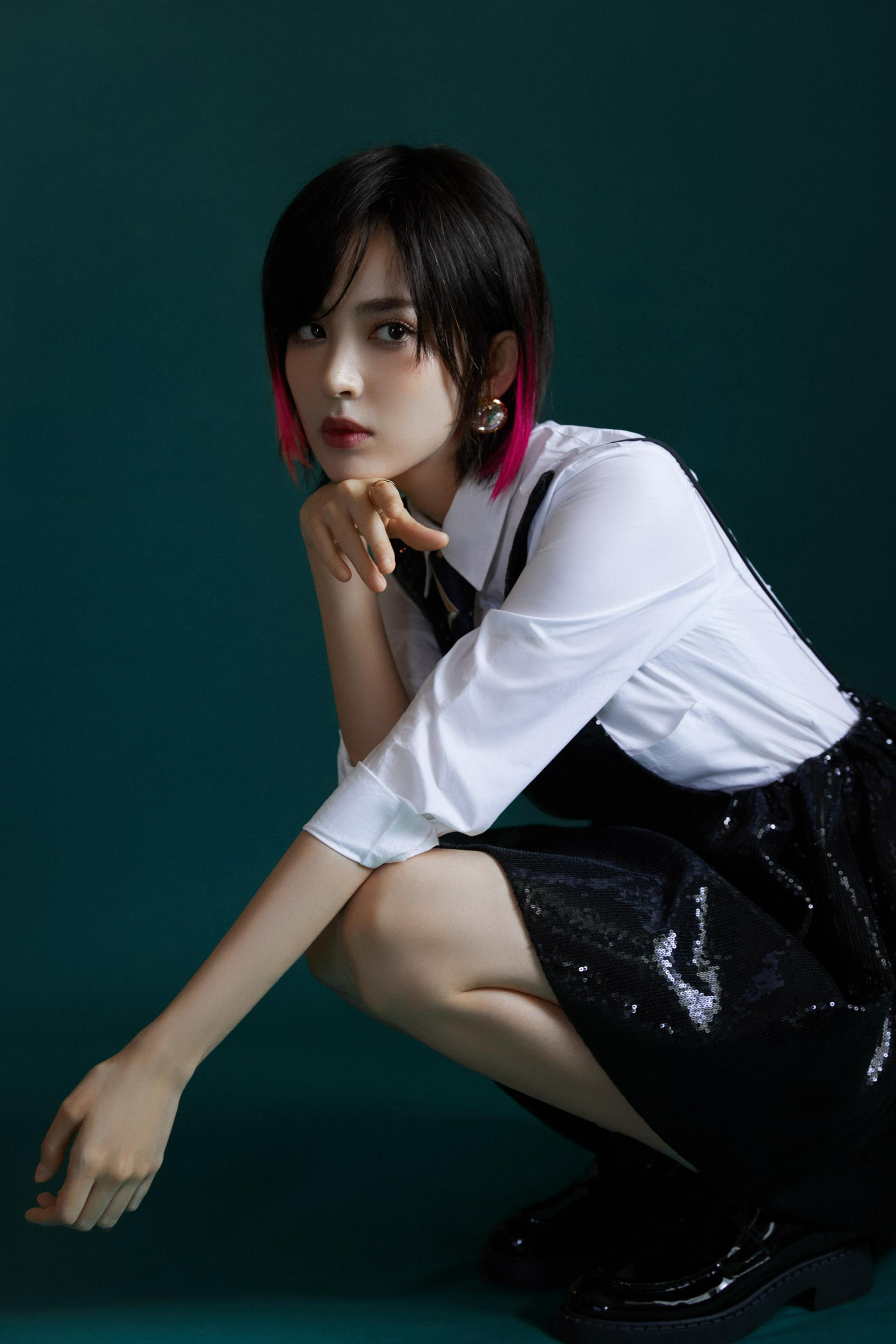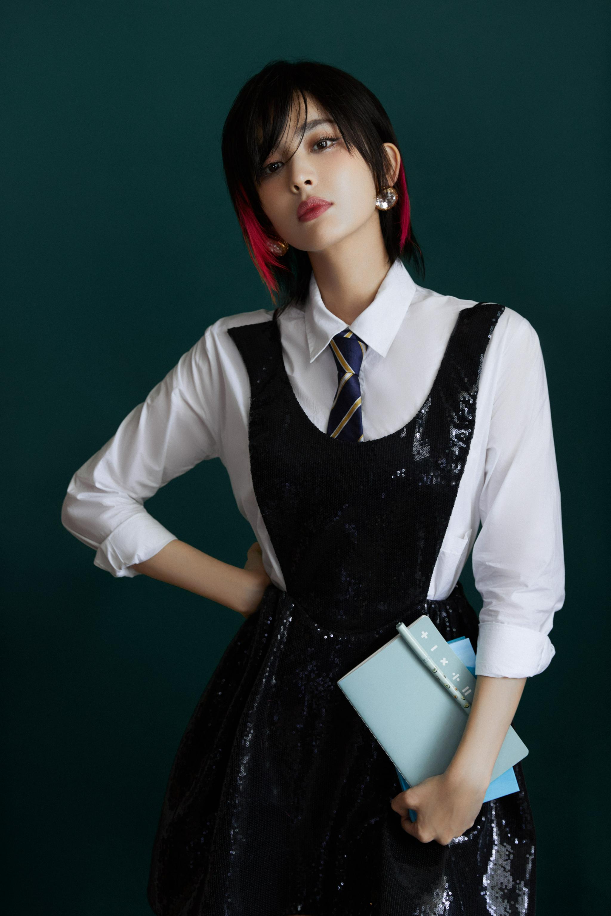 古力娜扎一头红发配白衬衫 口含棒棒糖配复古眼镜好飒