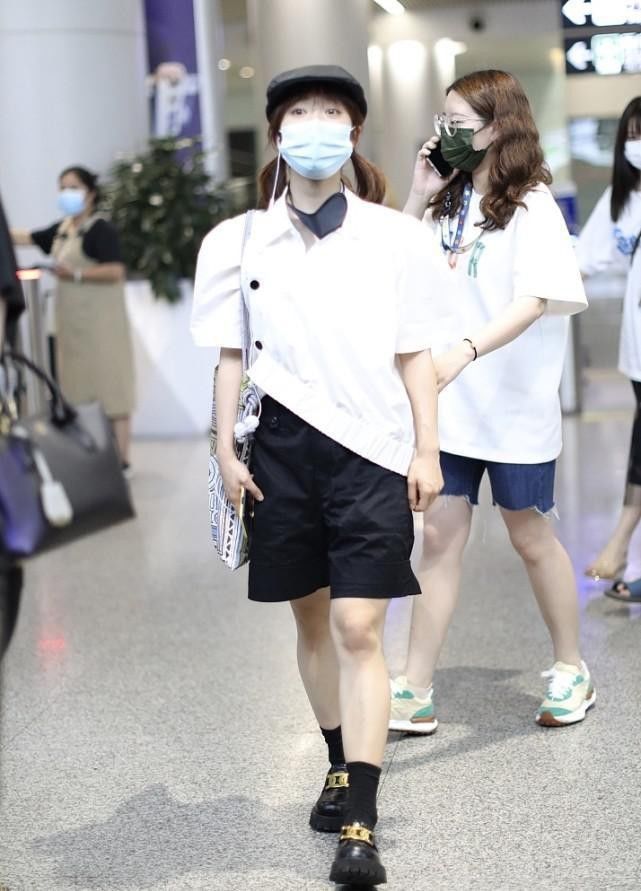 沈月的穿搭一言难尽,斜边衬衫显得有点壮,好在五分短裤挺显瘦,沈月的搭配单独拿出来会感觉十分难看。