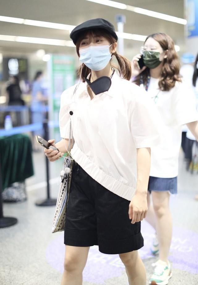 沈月把黑白色穿出个性,宽肩衬衫斜着穿,配短裤看着好俏皮,不得不说沈月的搭配真的很值得我们学习了,特别是小个子的女孩子可以多多参考沈月的穿搭哦。