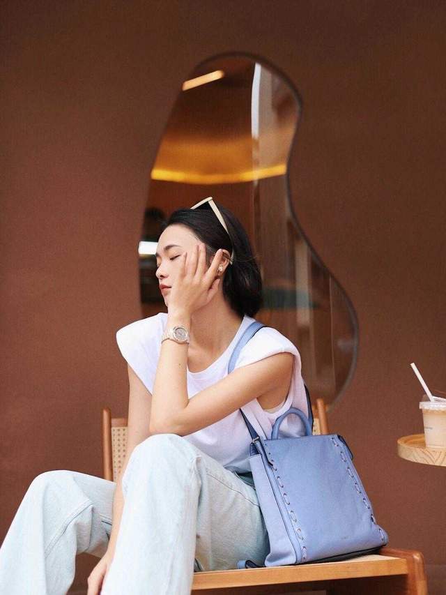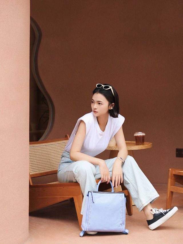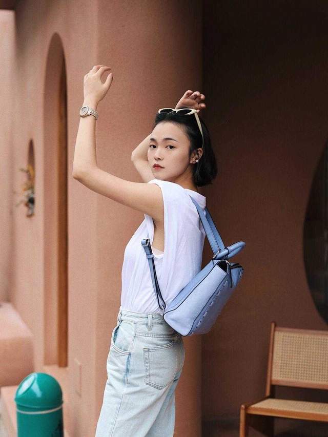 白色也是显得比较高级的色彩,选择一个白色不规则的T恤,来搭配浅色的阔腿牛仔裤,一看就显得又高又好看,这样的服装其实是可以照搬的,都会显得特别完美。