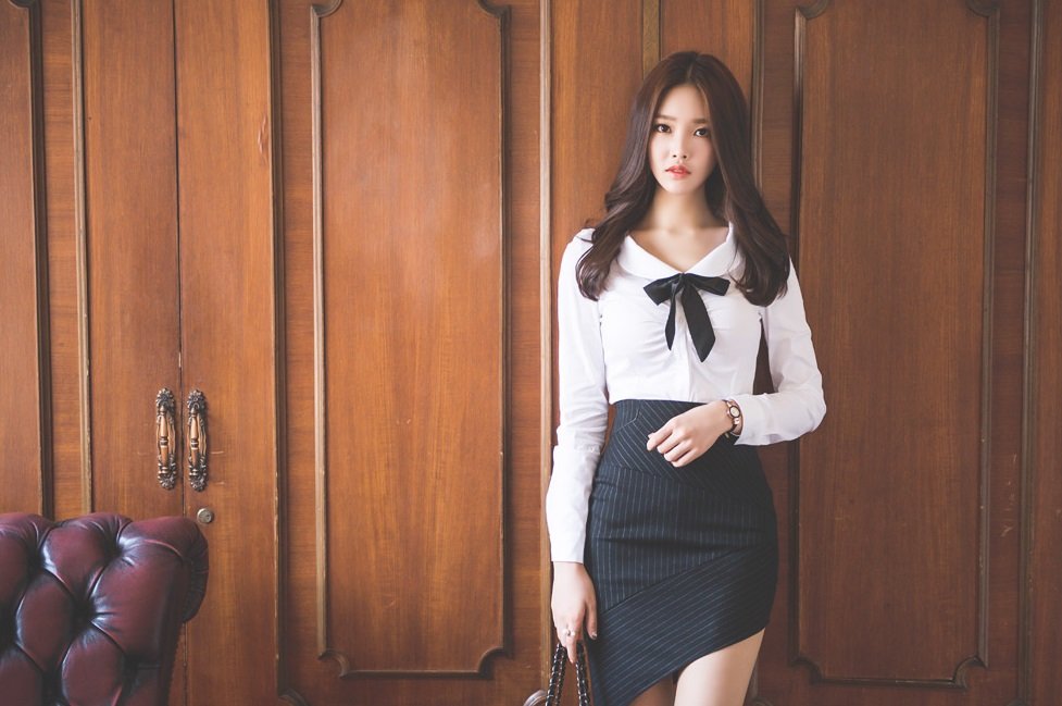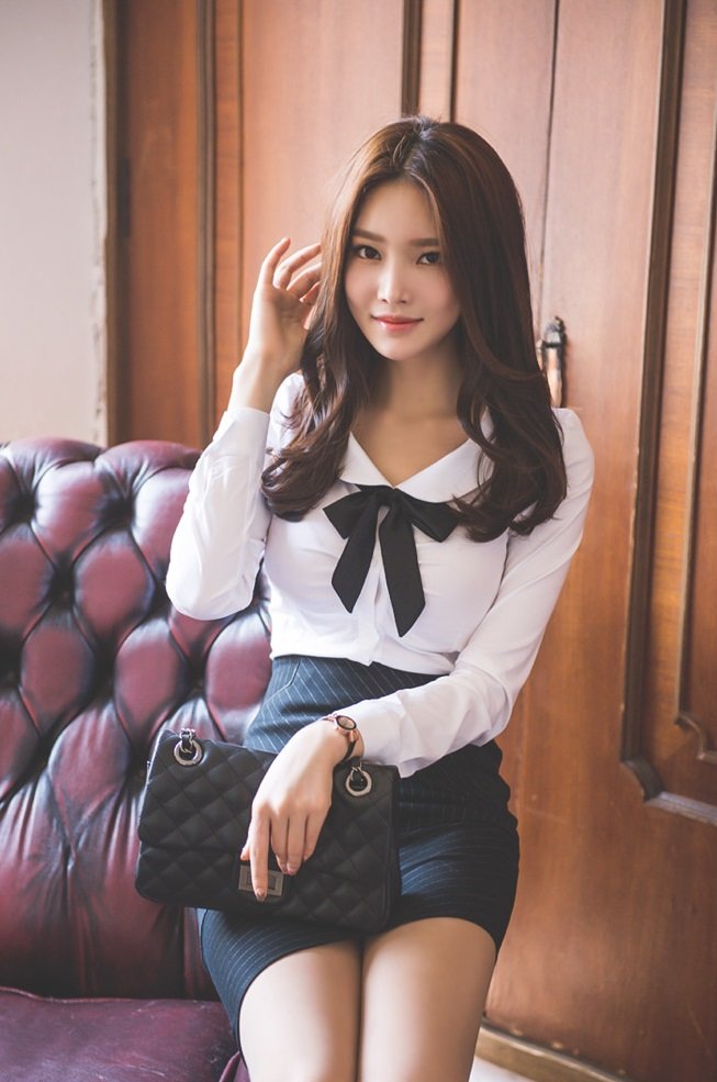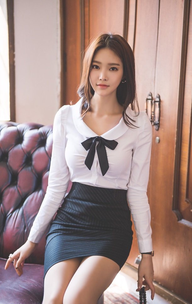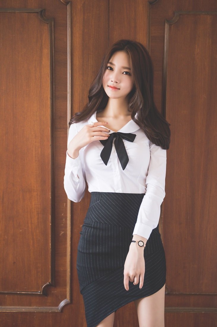 这位小姐姐虽然选择的也是一件白色的衬衫,但在款式上却很是减龄百搭,娃娃领的设计搭配黑色的领结点缀,俏皮又时尚。