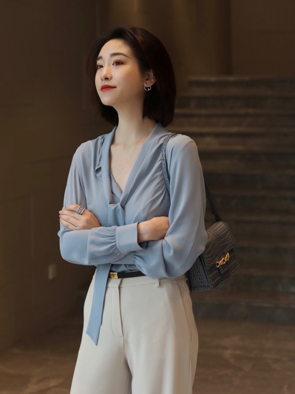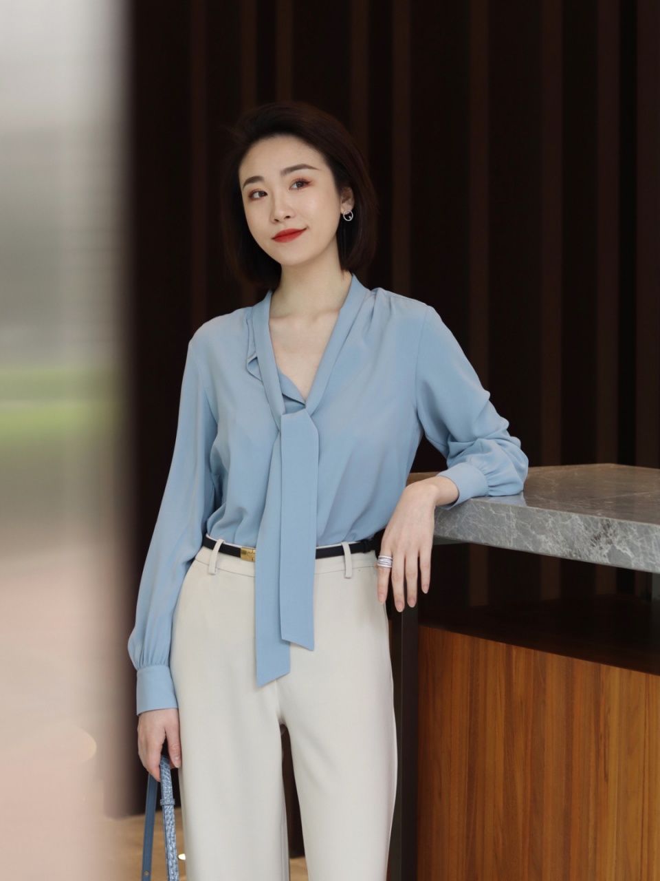 版型设计比较中规中矩的衬衫难免给人呆板的感觉,选择飘带的衬衫,气质上会更加柔和优雅一些,增添女人味,作为职场穿搭多了一份亲和力,作为休闲穿搭又带着一份飒爽利落的感觉,也是我们大家衣橱中必不可少的一款单品之一了,打破沉闷单调,多多展现优雅温柔的一面。