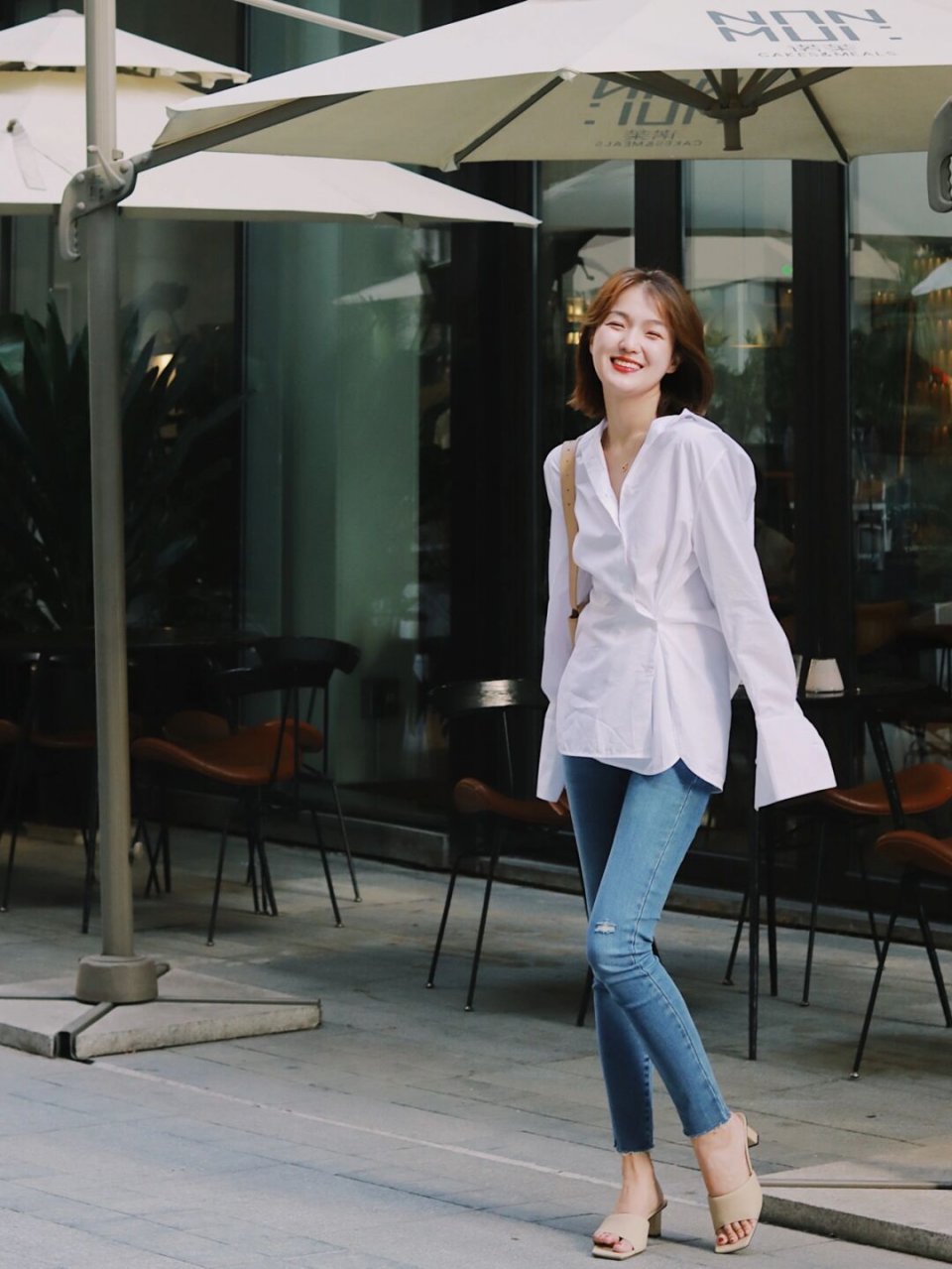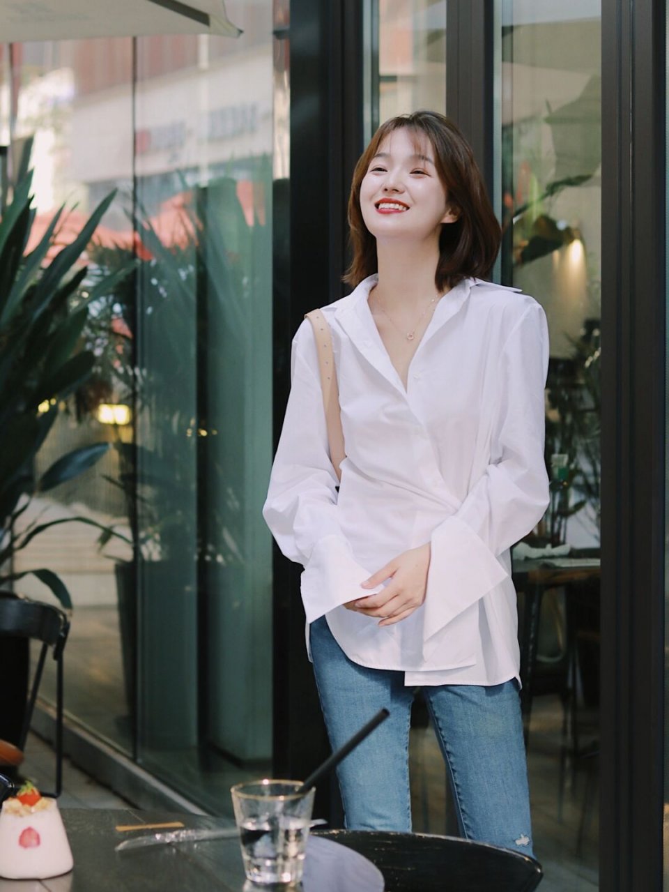 衬衫和牛仔裤也是一对很好的搭档,而且多用于日常休闲穿搭,都是比较偏休闲感的时尚单品,但是在搭配的时候稍微注意一点,往往也能够彰显利落洒脱的氛围,可以借鉴下面的穿搭,一件极具设计感的白衬衫搭配上修身的牛仔裤,简约又清爽, 舒适大方,又能够展现自己的好身材优势。