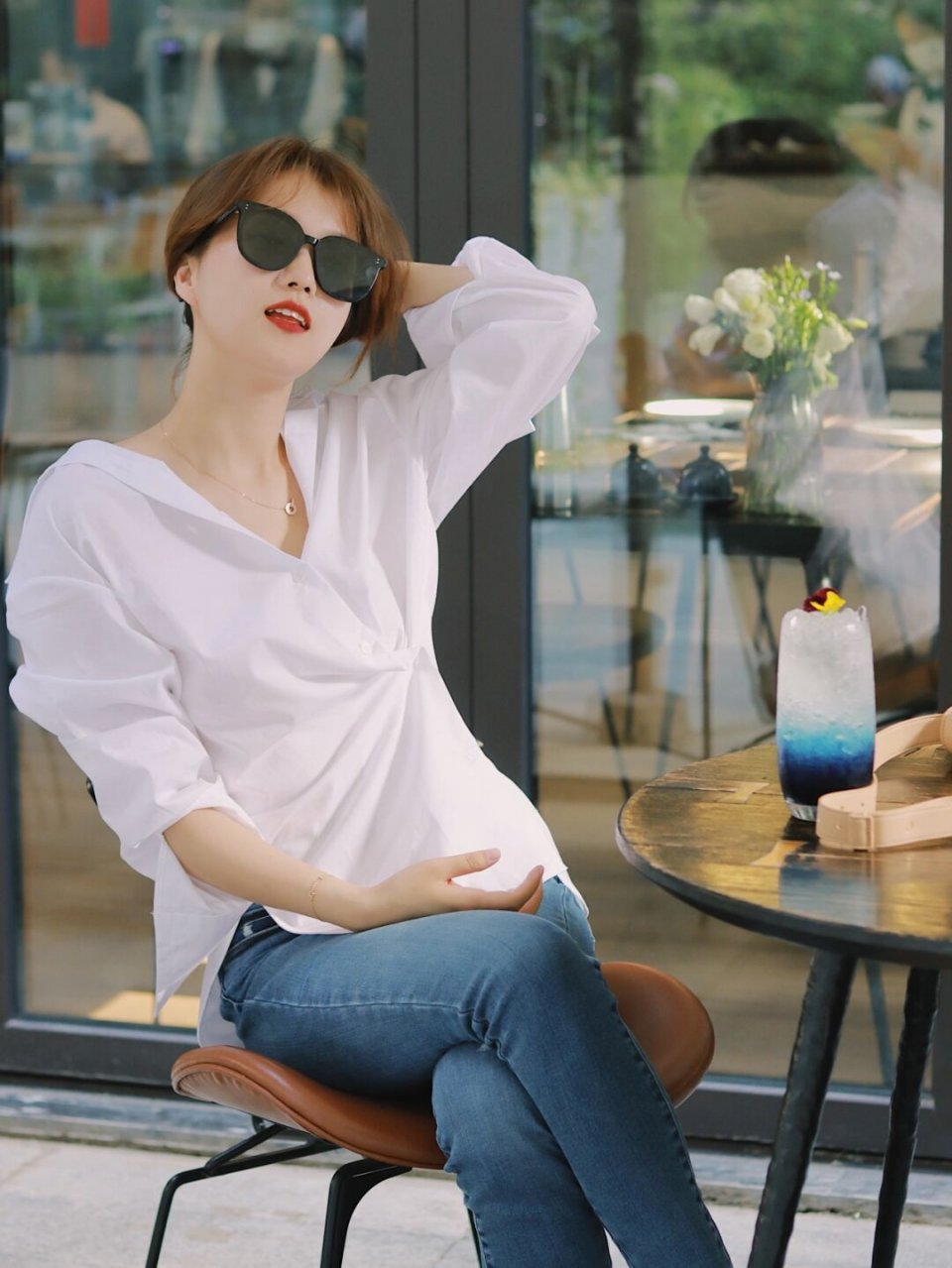 白衬衫在日常生活中使用的频率太高,虽然洋气百搭,但也容易“撞衫”,黑衬衫驾驭起来具有一定难度,不妨试试蓝色,清爽简约又带着几分帅气感,对于肤色不挑剔,是大家都能驾驭的一种颜色,还能中和衬衫自身的正式和严肃感,让整体的造型干练利落又不失温柔简约感。