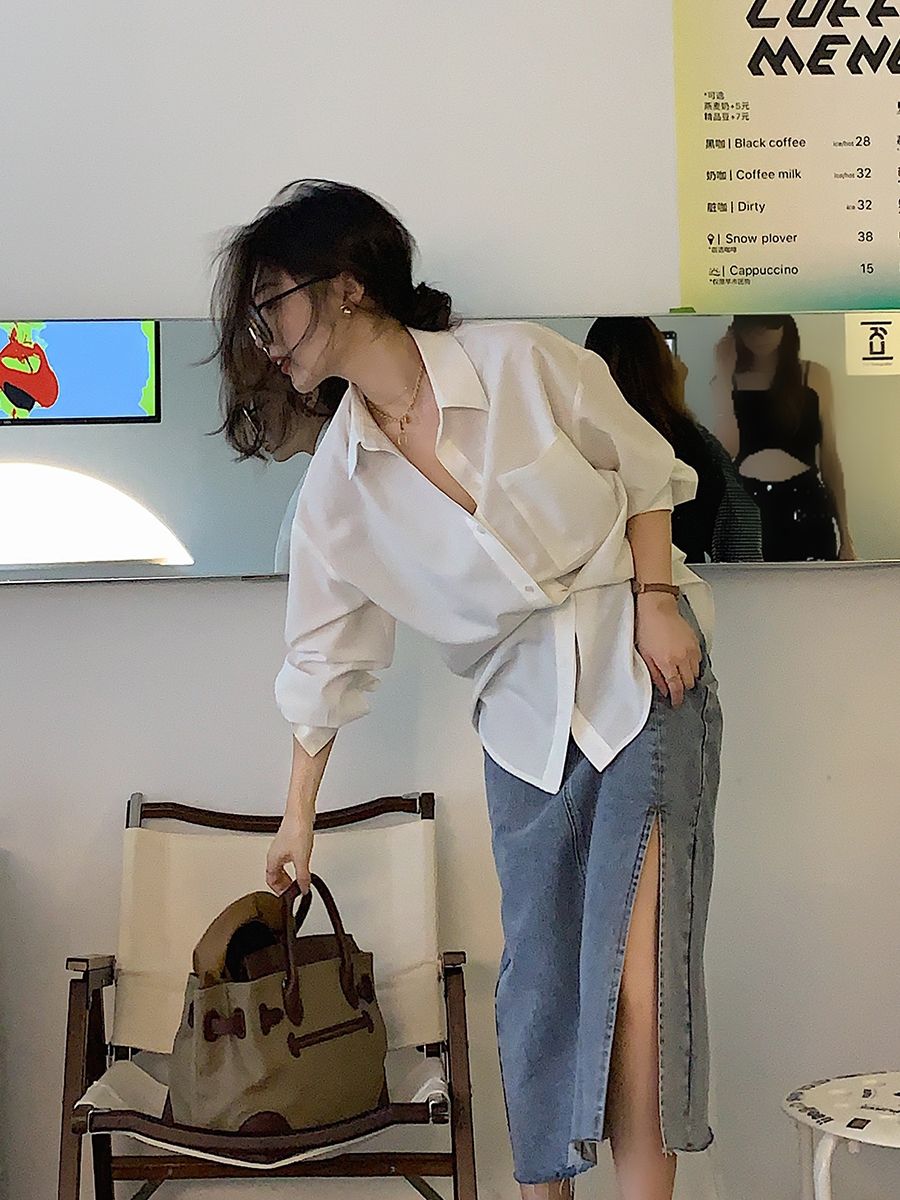 单穿衬衫搭配裙子的时候,风格比较的随性,同时又特别地适合秋季,这样穿出来的造型简单又干练,反正高级感是存在的。因为这个季节刚好也不是那么冷嘛,所以这样穿搭就正好,也不会说穿太少,但是也不会太厚重。