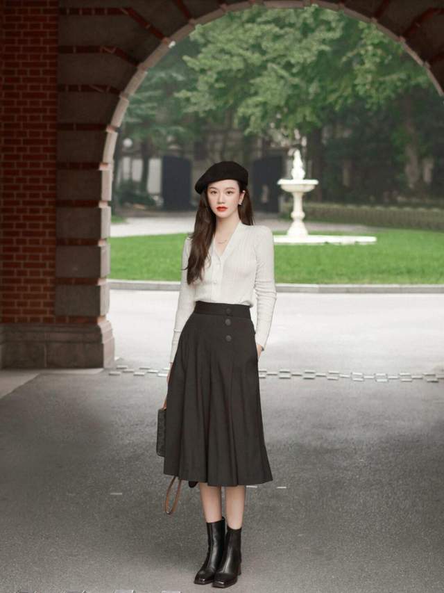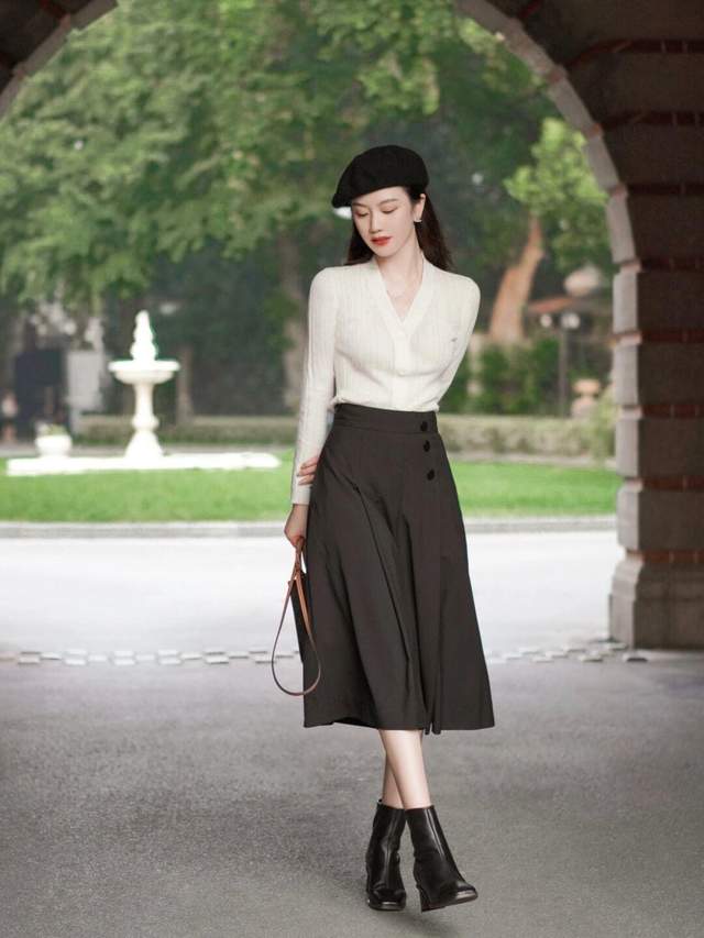日常出门的话,还可以选择一个黑色的单肩皮包,搭配起来更有气质!像这样的穿搭比较适合25岁左右的女生穿,穿起来优雅还有女人味!