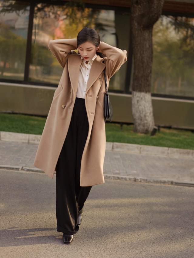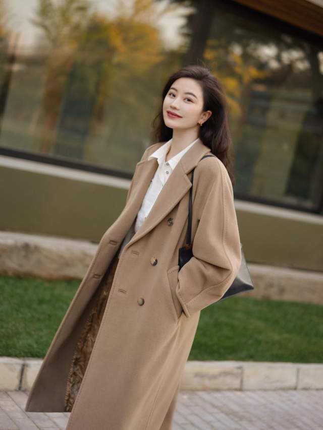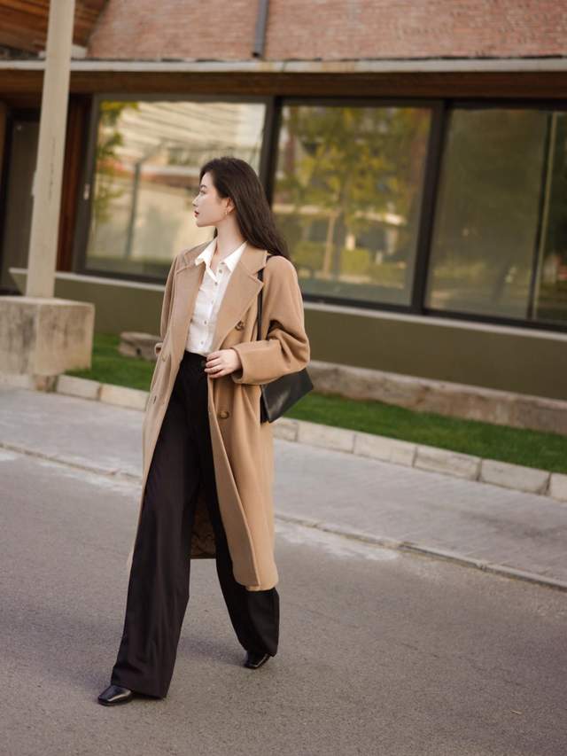如果你不知道怎么搭配,那么你可以参考这位穿搭博主是怎么搭配的,或许能够给你提供一些搭配灵感。秋天穿毛呢大衣的话,估计是最保暖的了,这位穿搭博主的选择了一件长款的咖啡色的大衣,这件大衣的版型是比较好的,而且长款的设计更加的挡风还保暖。