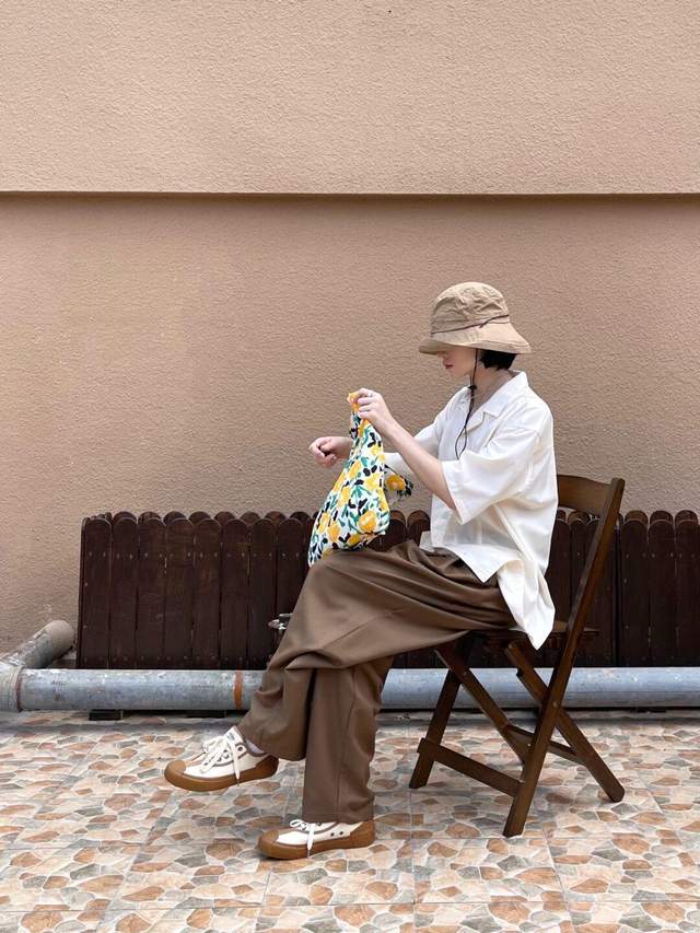 鞋子可以选择一双帆布鞋,就能够满足日常的需求,在配饰的选择上可以搭配一顶休闲的帽子,不仅能够当作装饰还能够防晒,岂不是一举两得。
